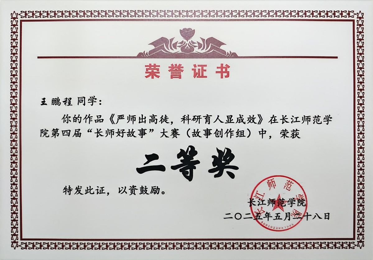 5月26日,在哈哈体育第四届“长师好故事”大赛中,HAHA体育2024级经济统计学一班王鹏程所著作品《严师出高徒,科研育人显成效》荣获二等奖。